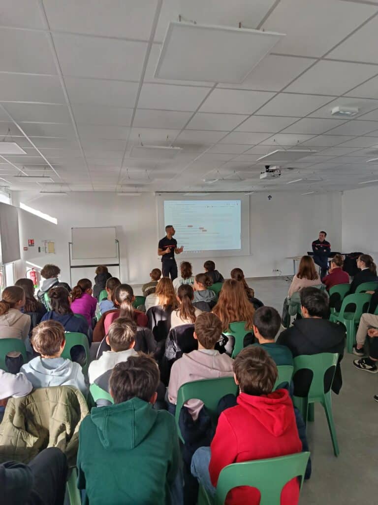Comme chaque année, tous les élèves de 4e ont pu assister à une présentation des Jeunes Sapeurs-Pompiers (JSP) le vendredi 23 janvier 2026. Celle-ci a été menée par C. DOUTEAU et K. DURANDET Sapeurs-Pompiers du Centre de Secours de Chavagnes en Paillers et de Challans. Cela a été l’occasion pour eux d’expliquer la formation : le contenu, les attendus, … et de partager leur expérience.