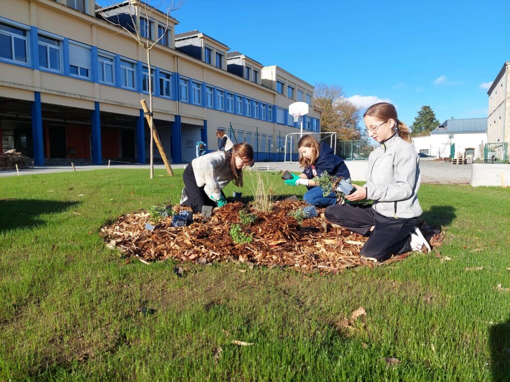 Après 3 années de travail de la commission végétalisation et des éco-délégués du collège, les réalisations sont enfin présentes. Ce projet est né d’une réflexion environnementale, et du souci de donner un lieu de vie agréable aux jeunes, un espace où ils se ressourcent et apaisant.