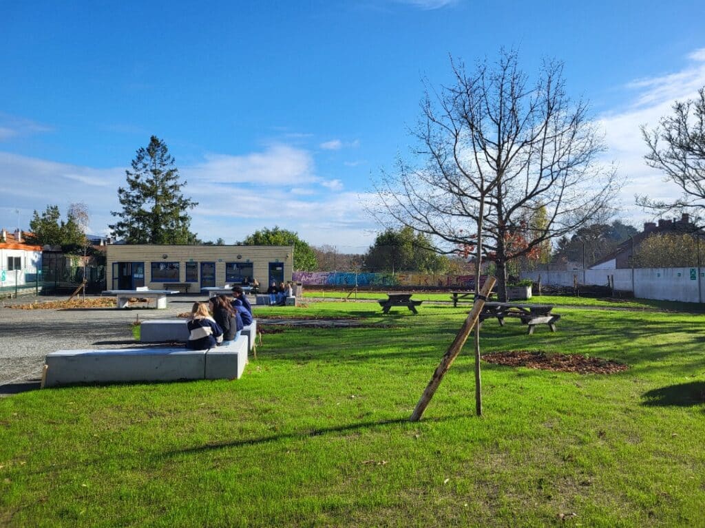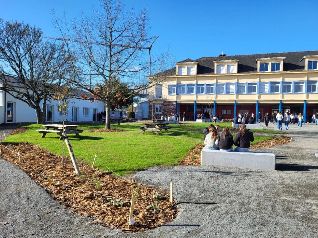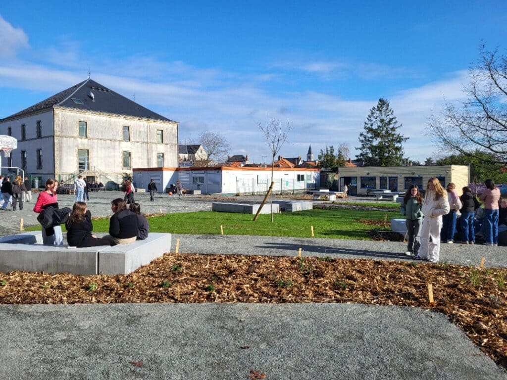 Enfin une belle surprise pour les élèves ce lundi matin 03 novembre 2025 au collège. Après 15 jours de travaux réalisés par les entreprises CAP PAYSAGE et JOKER TP retenues par les administrateurs de l’OGEC du collège et avec l’aide de la mairie qui a donné plus de 100m3 de terre végétale et avec les subventions du conseil départemental de la Vendée.